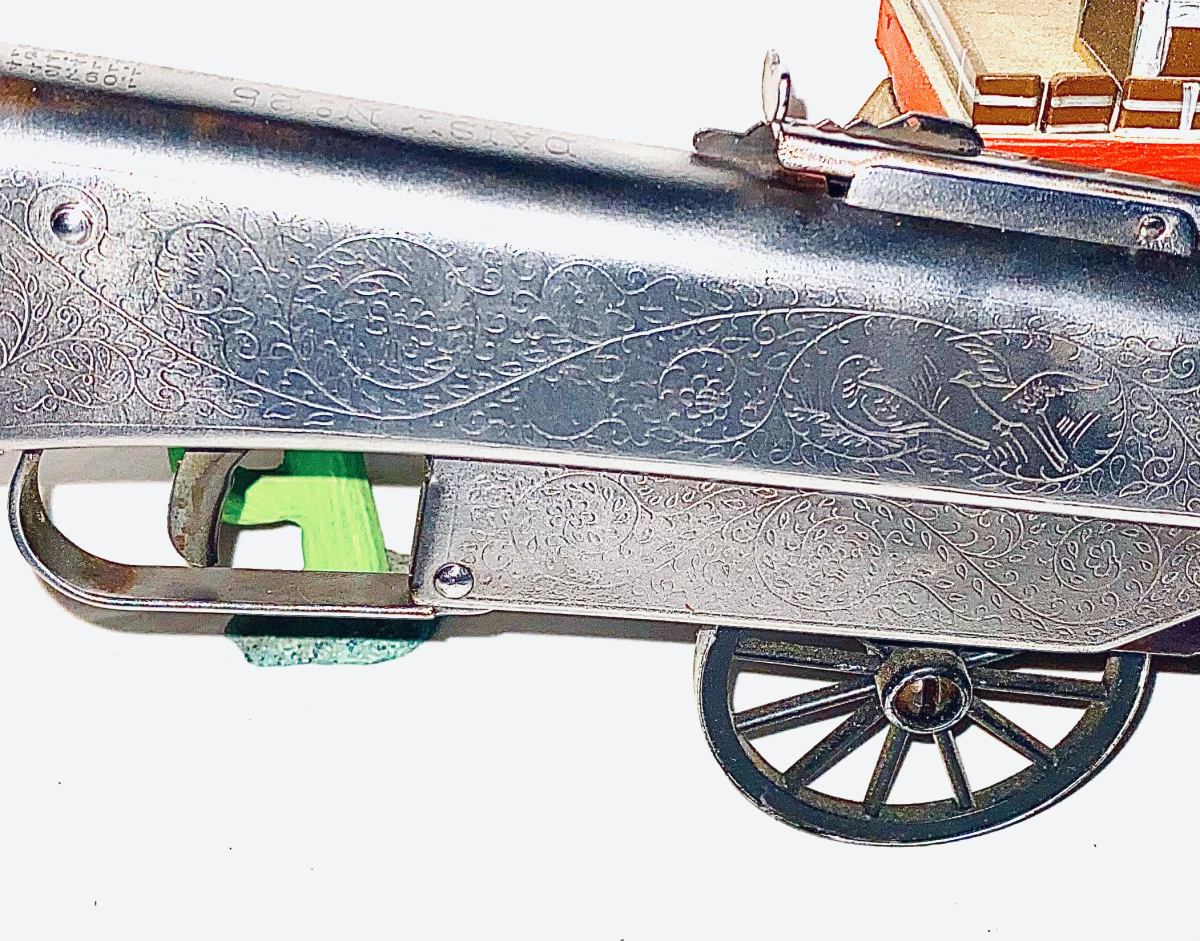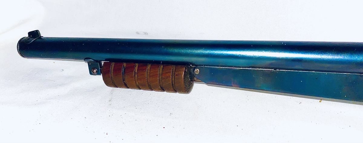 This Daisy model 25 was produced in Plymouth Michigan from 1936 thru 1951 with a 31/2 years break starting December 7 1941 thru 1945 when the war ended . It has the stamped engraving in the receivers . What makes this a custom gun it has been stripped, fire blued and the receiver has been stripped and buffed to a high shiny gloss . New seals shoots strong. Good wood . The shipping on this gun would be $35