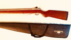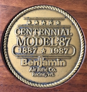 This Benjamin model 87 is the Centennial 100th Anniversary of Benjamin airguns 1887 to 1987. This is a beautiful gun gold plated with hard walnut stock & foregrip 22 caliber comes with monogrammed canvas rifle bag has a gold medallion mounted in the stock as seen in the picture . This gun is being sold on consignment. If you are interested you must call the owner to make the deal . Call Joe at 352-693-2138 7 pm to 10 pm eastern standard time. The asking price is $2500 he is lowering price to $2000 or best offer and $50 shipping & insurance. This gun has never been shot or played with just displayed. The gun is now 38 years old reportedly less than 500 of these was produced. Very collectible Beautiful gun .