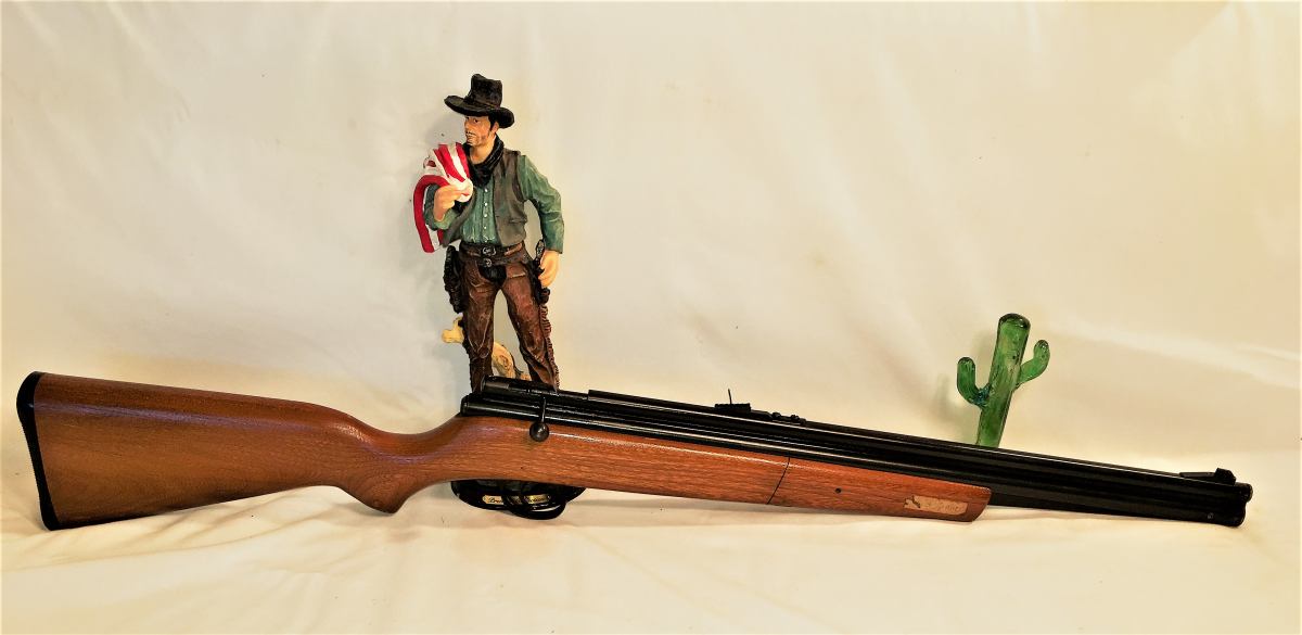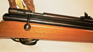 THIS GUN SHOWS VERY LITTLE USE IT CAN BE PUMPED AS MUCH AS 10 TIMES REACHING 650 FPS IT WEIGHS 51/2 LBS . WOOD STOCK AND FOREARM . THIS GUN IS BOLT ACTION AND SELF COCKING WHICH IS THE 3RD VARIANT PRODUCED FROM 1973 THRU 1978 . THIS GUN PUMPS UP AND SHOOTS STRONG .GOOD FOR PROTECTION AND SMALL GAME OR JUST PLUNKING .