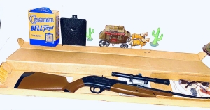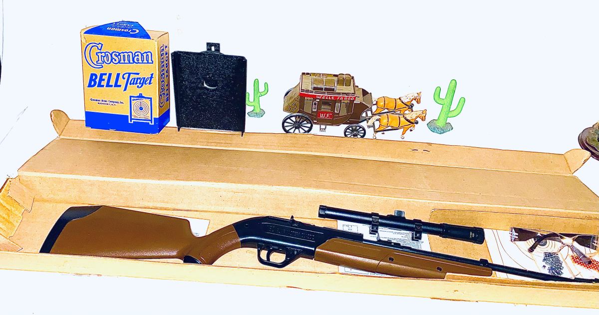 This is a brand new crosman model 760 pump approximately 4 years old with all the paperwork comes with scope , safety glasses, targets, 177 caliber pellets and some bb’s in factory box also comes with a new old bell target in the box . never used never shot . Gun was tested shoots good . The shipping on this gun would be $35
