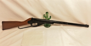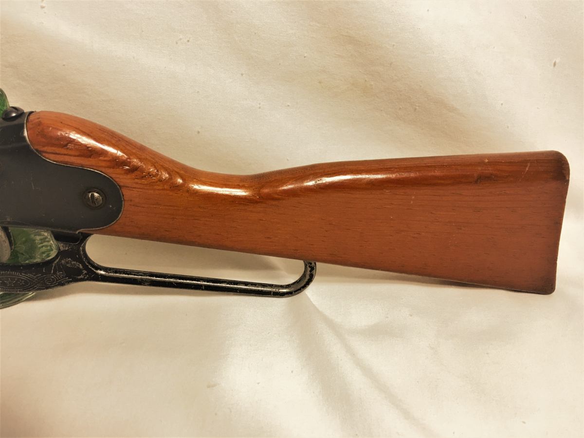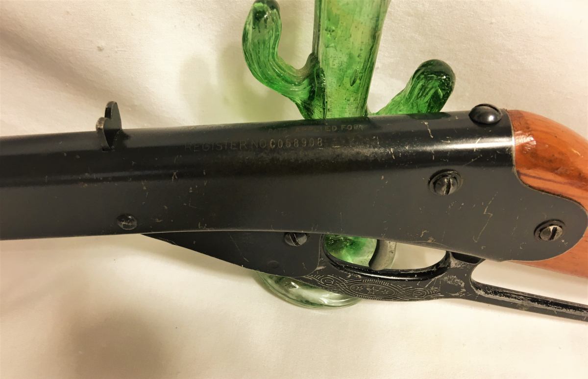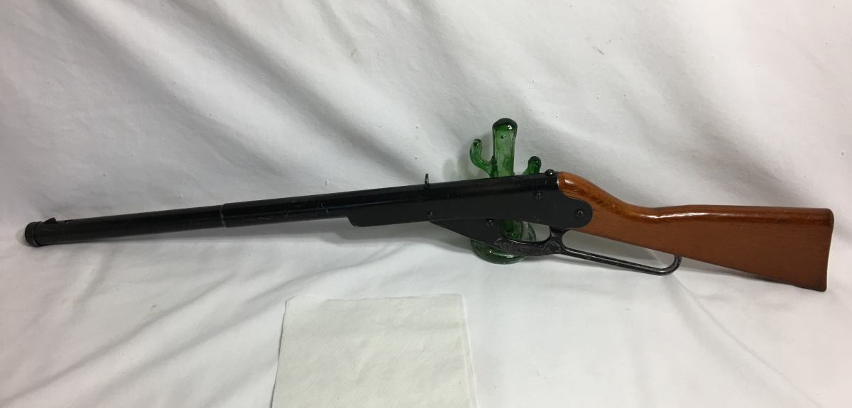 THIS IS A DAISY 102 MODEL 36 CUB A YOUTH SIZE BB GUN SHOOTS STRONG NICE WOOD STOCK HAS MANY SCRATCHES ON THE PAINT AS YOU CAN SEE IN THE PICTURES THIS GUN WAS MADE AROUND 1955 IN PLYMOUTH MICHIGAN WE CAN REPAINT IT LIKE NEW FOR A ADDITIONAL $25.00 IF YOU WISH IT WOULD BE PAINTED BLACK WITH A CLEAR COAT .