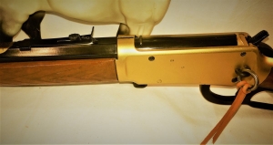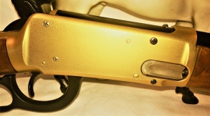 DAISY 1894 SPITTIN IMAGE OF THE WINCHESTER 1894 . ALL NEW PAINT , NEW SEAL KITÂ , HEX BARREL & SHOOTS STRONG . RECEIVERS PAINTED GOLD WITH CLEAR COAT OVER . VERY NICE GUN