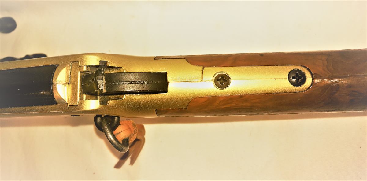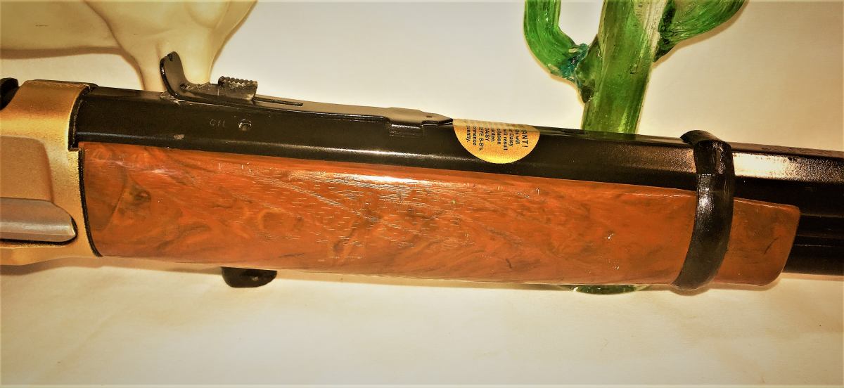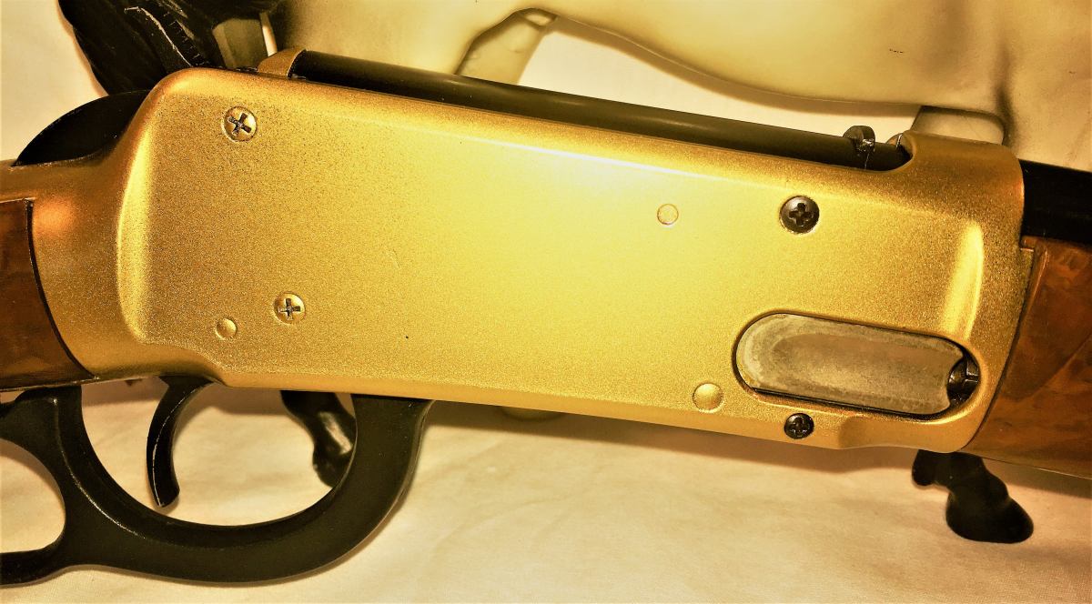 DAISY 1894 SPITTIN IMAGE OF THE WINCHESTER 1894 . ALL NEW PAINT , NEW SEAL KITÂ , HEX BARREL & SHOOTS STRONG . RECEIVERS PAINTED GOLD WITH CLEAR COAT OVER . VERY NICE GUN