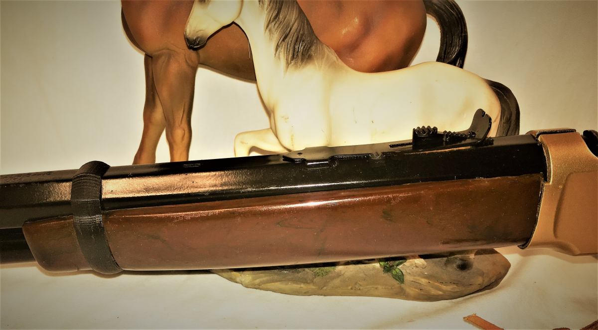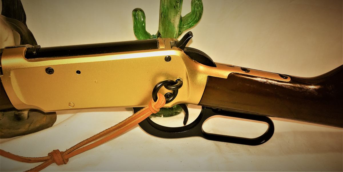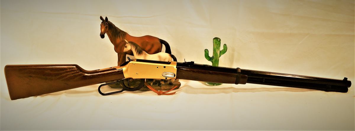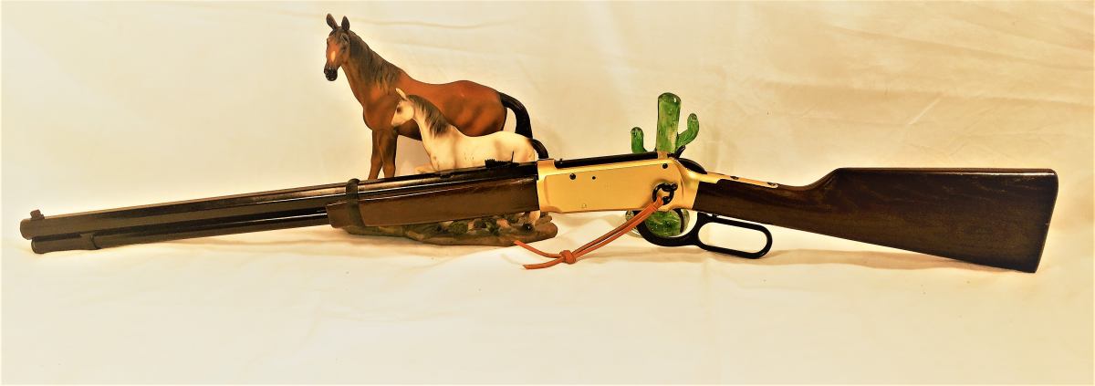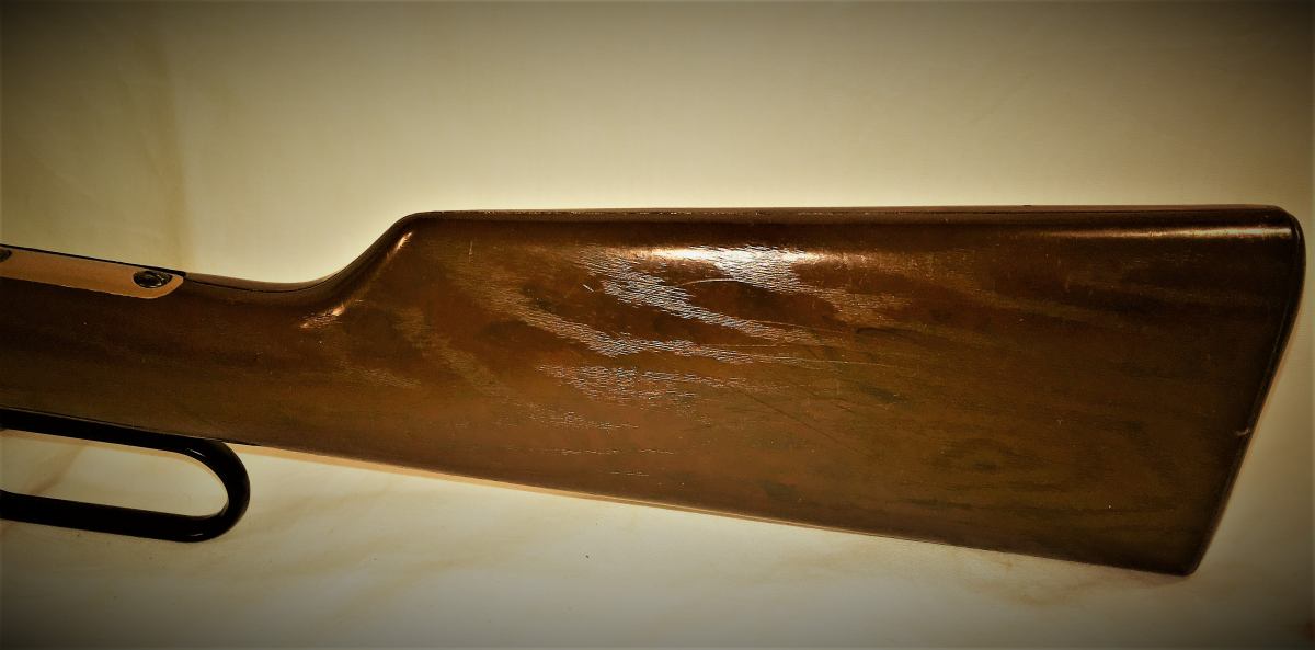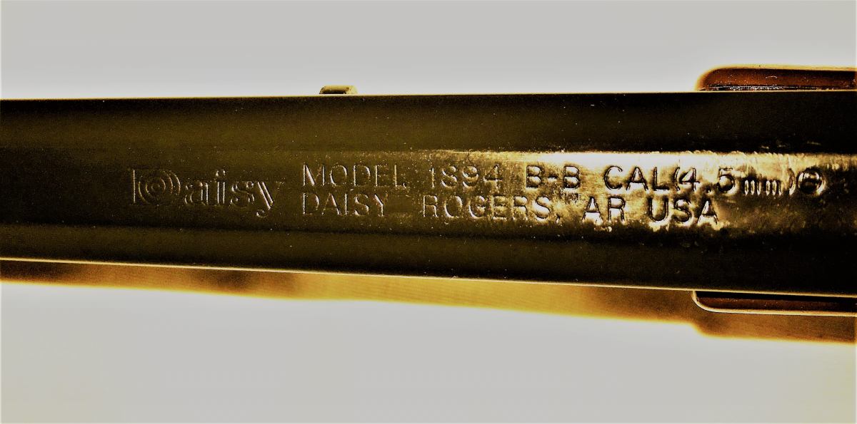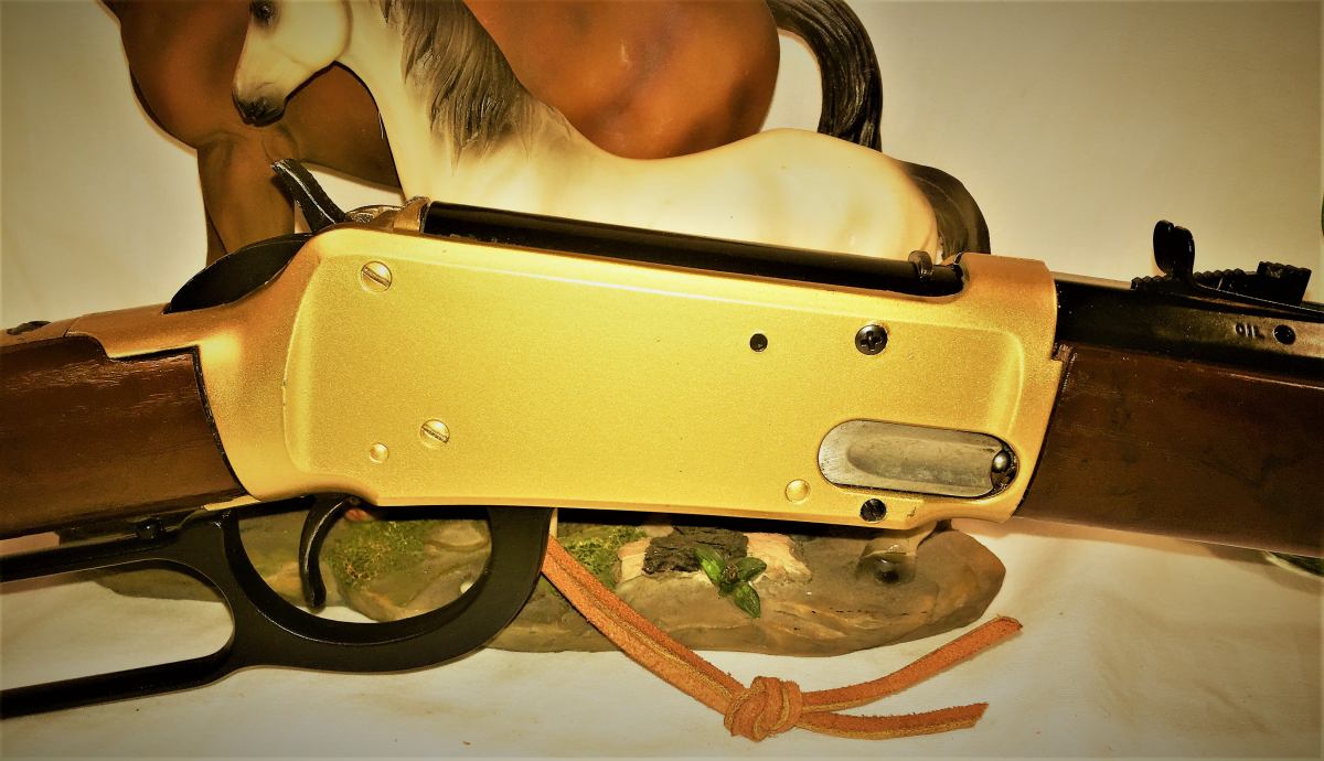 THIS IS A DAISY 1894 SPITTIN IMAGE OF THE WINCHESTER 1894 IT IS A CUSTOM BECAUSE THE RECEIVERS HAVE BEEN PAINTED GOLD TO RESEMBLE BRASS INSTEAD OF BEING BLACK AND HAS A OCTAGON BARREL . HAS BEEN COMPLETELY RESTORED , RESEALED . SHOOTS AND LOOKS LIKE NEW .