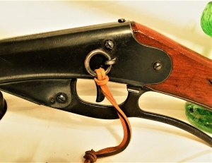 THIS IS A DAISY 1ST VARIANT RED RYDER COPPER BAND PRODUCED IN 1940 . THIS IS A VERY VERY NICE COPPER BANDÂ TO BE 81 YEARS OLD 95% OF ORIGINAL BLUING , GOOD BRAND ON STOCK , GOOD FOREGRIP , AND STILL HAS GOOD COATING ON THE COPPER BANDS . THIS GUN HAS BEEN CLEANED & OILED THE ONLY THING THAT ISN’T ORIGINAL ABOUT THIS GUN IS THE LEATHER THONG . VERY NICE AND VERY COLLECTIBLE . THE SHIPPING ON THIS GUN WOULD BE $30 WITH INSURANCE IN THE LOWER 48