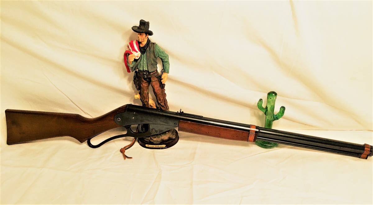 THIS IS A DAISY 1ST VARIANT RED RYDER COPPER BAND PRODUCED IN 1940 . THIS IS A VERY VERY NICE COPPER BANDÂ TO BE 81 YEARS OLD 95% OF ORIGINAL BLUING , GOOD BRAND ON STOCK , GOOD FOREGRIP , AND STILL HAS GOOD COATING ON THE COPPER BANDS . THIS GUN HAS BEEN CLEANED & OILED THE ONLY THING THAT ISN’T ORIGINAL ABOUT THIS GUN IS THE LEATHER THONG . VERY NICE AND VERY COLLECTIBLE . THE SHIPPING ON THIS GUN WOULD BE $30 WITH INSURANCE IN THE LOWER 48