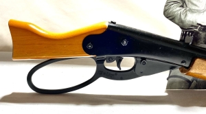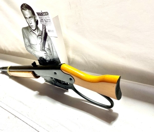 THIS IS A CUSTOM MADE MARE’S LEG MADE FROM A DAISY BB GUN RESEMBLING THE ONE STEVE MCQUEEN WAS HOLDING IN THE PICTURE FROM THE TV SERIES DEAD OR ALIVE . TO LOAD THIS GUN REMOVE THE FRONT SITE TO THE LEFT EXPOSING THE LOADING HOLE . IT HOLDS ABOUT 50 BB’S . MOVE THE FRONT SITE BACK TO COVER THE LOADING HOLE . THE SHIPPING ON THIS GUN WOULD BE $20