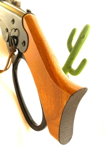 HERE IS A VERY YOUNG STEVE McQUEEN PICTURED WITH HIS MARE’S LEG WINCHESTER IN THE 1950’S TV WESTERN SERIES DEAD OR ALIVE WHERE HE PLAYED THE PART OF A BOUNTY HUNTER . THIS MARE’S LEG WAS CUSTOMIZED FROM A BRAND NEW DAISY BB GUN . THE HOOP LEVER WAS ADDED AND IT IS METAL . HOLDS AROUND 60 BB’S SHOOTS STRONG . MOVE THE FRONT SIGHT TO THE LEFT TO EXPOSE A LOADING PORT AS SEEN IN THE PICTURE . THE SHIPPING ON THIS GUN WOULD BE $18.00