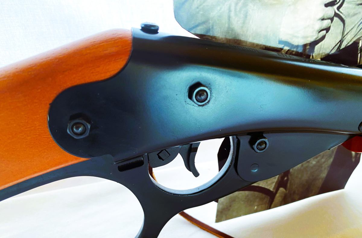 HERE IS A VERY YOUNG STEVE McQUEEN PICTURED WITH HIS MARE’S LEG WINCHESTER IN THE 1950’S TV WESTERN SERIES DEAD OR ALIVE WHERE HE PLAYED THE PART OF A BOUNTY HUNTER . THIS MARE’S LEG WAS CUSTOMIZED FROM A BRAND NEW DAISY BB GUN . THE HOOP LEVER WAS ADDED AND IT IS METAL . HOLDS AROUND 60 BB’S SHOOTS STRONG . MOVE THE FRONT SIGHT TO THE LEFT TO EXPOSE A LOADING PORT AS SEEN IN THE PICTURE . THE SHIPPING ON THIS GUN WOULD BE $18.00