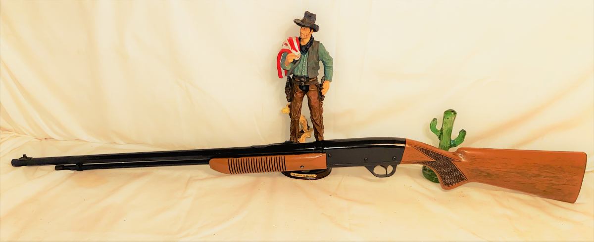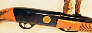 THIS IS THE SPITTIN IMAGE OF THE FAMOUS REMINGTON FIELDMASTER 22 CALLIBER PUMP PRODUCED IN ROGERS ARKANSAS FROM 1967 THRU 1971 . MOLDED STOCK & FOREARM , PAINTED FINISH , 40 SHOT REPEATER . SLIDE ACTION PUMP COCKING . THIS GUN HAS BEEN RESEALED & SHOOTS STRONG . SOME PLAYTIME AS YOU CAN SEE FROM THE FINISH . THIS GUN IS VERY COLLECTIBLE NOT TO MANY LEFT IN EXISTANCE . THE SHIPPING ON THIS GUN WOULD BE $30 IN THE LOWER 48 .