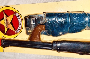 This Daisy legend series of toy rifles & pistols was produced in Rogers Arkansas in the late 60’s early 70’s . This toy is blistered packed on cardboard. These have been protected for some 40 years in a collection never been opened still has vibrant graphics. Toys like this are becoming very collectible. We have a few different ones we will be listing soon. The shipping on this set would be $25