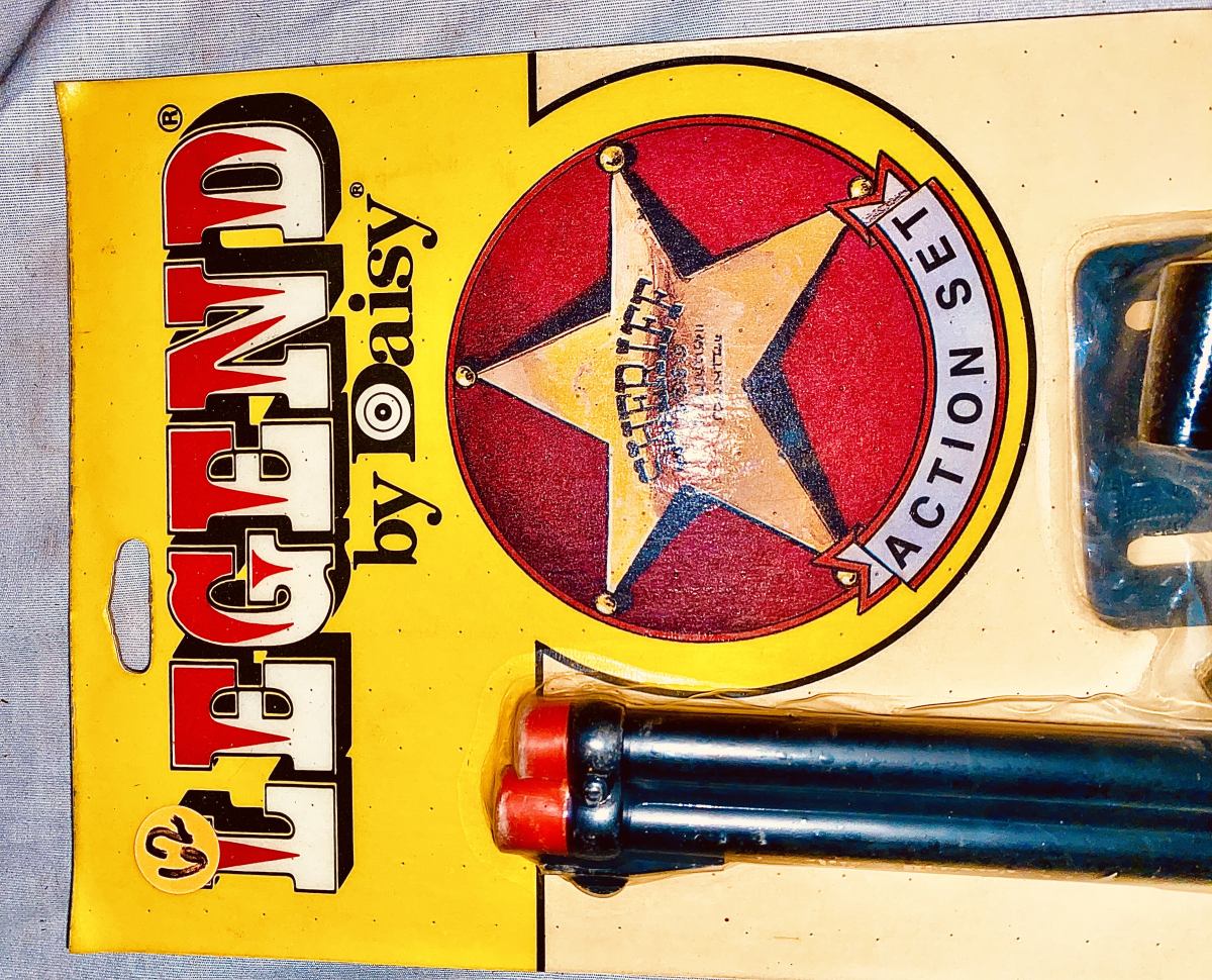 This Daisy legend series of toy rifles & pistols was produced in Rogers Arkansas in the late 60’s early 70’s . This toy is blistered packed on cardboard. These have been protected for some 40 years in a collection never been opened still has vibrant graphics. Toys like this are becoming very collectible. We have a few different ones we will be listing soon. The shipping on this set would be $25