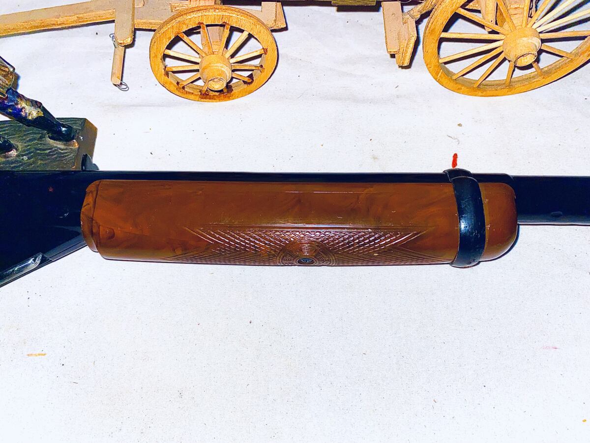 I obtained this gun and box from a collection I recently purchased with no one to tell me about the collection. It has been restored new paint shoots strong apparently has been resealed it was produced in 1964 & 1965 in Rogers Arkansas. Nice little gun plastic stock and plastic foregrip with band . The box is in good condition one end of the box was taped shut the other end shows some wear and repair. The shipping on this gun would be $28