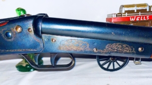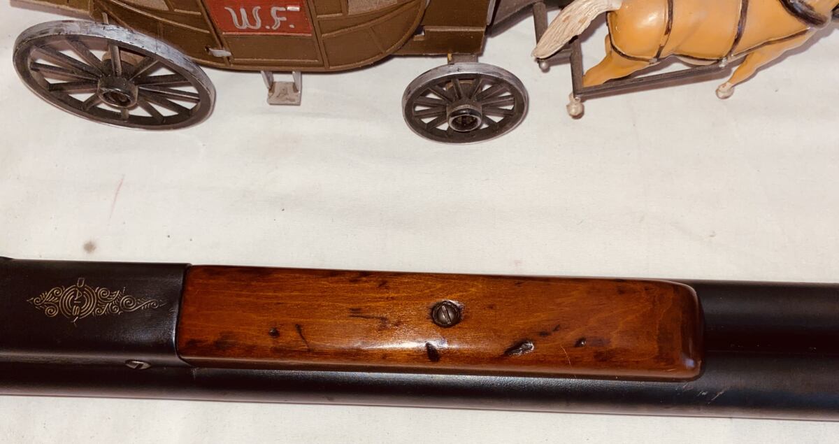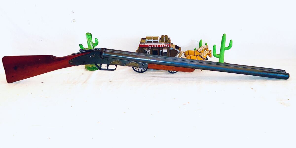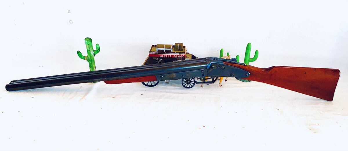 This Daisy model 104 double barrel was produced in Plymouth Michigan starting 1938 thru 1940 . The gun has two fifty rounds shot tube bb magazines , gun has a blued finish , walnut stock & foregrip . This gun was restored beautifully approximately 25 years ago by a professional restorer, wrapped in a towel and put away in storage until this year .This is a beautiful surviving Daisy double barrel. Shoots like brand new . We are offering this gun for $1500 with free shipping and some insurance. There isn’t many of these guns left this gun came from the original owner that received it when he was a boy and he had it restored. Collectible