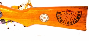 THIS DAISY MODEL 107 BUCK JONES WAS PRODUCED IN PLYMOUTH MICHIGAN IN 1934 THRU 1941 PRE-WAR WW11 . SLIDE ACTION , BLUED FINISH , SUNDIAL MARKINGS ON WOOD STOCK , FLOATING COMPASS , DAISY MARKED ON COMPASS DIAL . 60 SHOT GRAVITY FED MAGAZINE . THIS GUN SHOOTS HARD , REAL NICE BLUED ORIGINAL FINISH , NICE WOOD STOCK & FOREGRIP . IT IS HARD TO FIND ONE IN THIS GOOD OF CONDITION BUT HERE IT IS . REAL SWEET . VERY COLLECTIBLE .