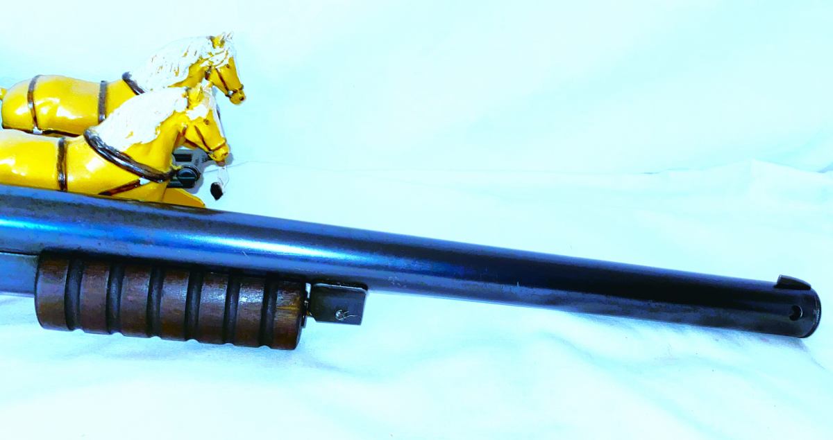 THIS DAISY MODEL 107 BUCK JONES WAS PRODUCED IN PLYMOUTH MICHIGAN IN 1934 THRU 1941 PRE-WAR WW11 . SLIDE ACTION , BLUED FINISH , SUNDIAL MARKINGS ON WOOD STOCK , FLOATING COMPASS , DAISY MARKED ON COMPASS DIAL . 60 SHOT GRAVITY FED MAGAZINE . THIS GUN SHOOTS HARD , REAL NICE BLUED ORIGINAL FINISH , NICE WOOD STOCK & FOREGRIP . IT IS HARD TO FIND ONE IN THIS GOOD OF CONDITION BUT HERE IT IS . REAL SWEET . VERY COLLECTIBLE .