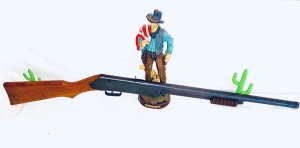 This Daisy model 107 Buck Jones BB gun is a very nice gun now it has been stripped of its surface rust cleaned and reblued and’s has been resealed shoots strong . Has a needle compass that works good which is an early one . The stock is in good condition. It was produced from 1934 thru 1942 at Plymouth Michigan. This is slide action 60 shot repeater the shipping on this gun would be $25