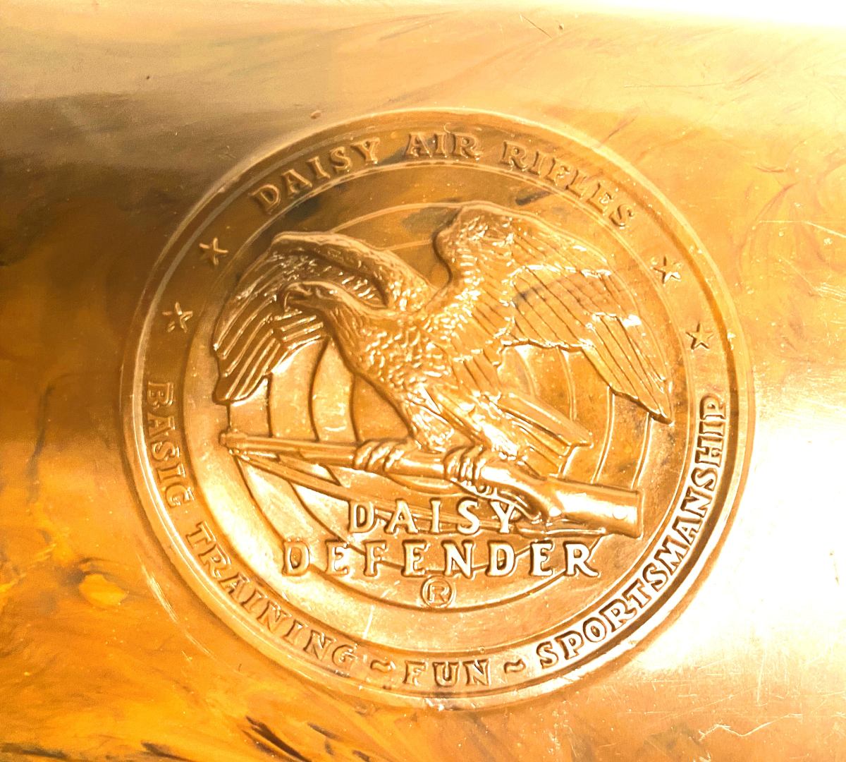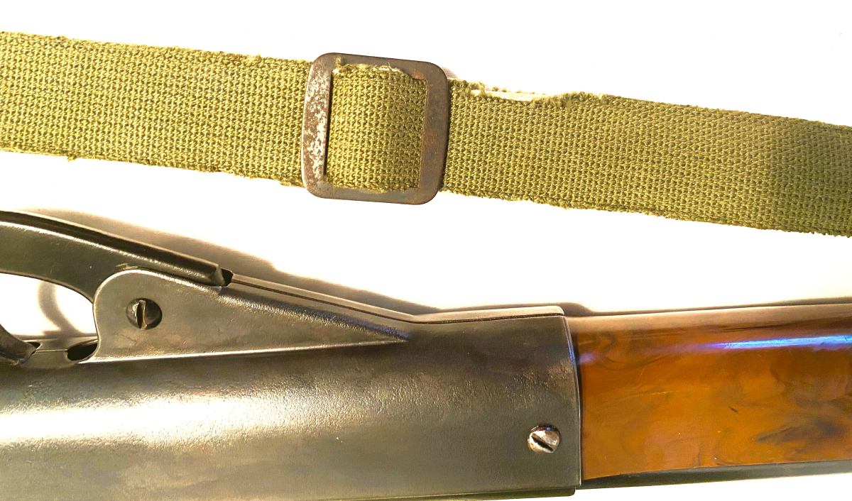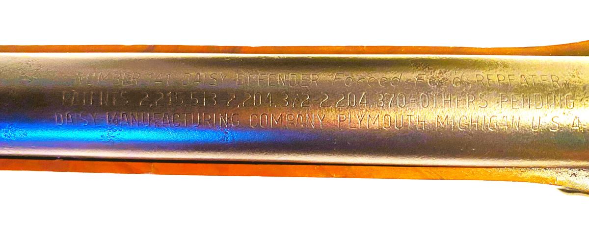 THIS DAISY DEFENDER MODEL 141 IS KNOWN AS THE KOREAN WAR DEFENDER PRODUCED IN PLYMOUTH MICHIGAN IN 1951 THRU 1953 . THIS IS A 50 SHOT SPRING FED REPEATER . IT HAS THE ORIGINAL SLING THAT HAS A LITTLE FRAYING . IT HAS BEEN REBLUED AND RESEALED . SHOOTS STRONG . PLASTIC STOCK & FOREARM WITH ORIGINAL STORAGE DOOR IN BUTT OF STOCK . VERY COLLECTIBLE .