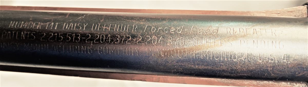 THIS DAISY MODEL 141 DEFENDER WAS PRODUCED IN 1951 THRU 1953 IN PLYMOUTH MICHIGAN IT STILL HAS NICE BLUING , ORIGINAL SLING , HAS BEEN RESEALED AND SHOOTS STRONG . THIS GUN IS NOW 68 TO 70 YEARS OLD . GOOD STOCK AND FOREGRIP . NICE COLLECTIBLE GUN . THE SHIPPING ON THIS GUN WOULD BE $25 IN THE LOWER 48