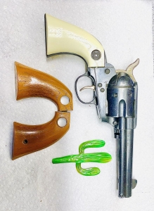This Daisy model 179 was produced in Rogers Arkansas in 1960 with the spittin image series that they started . This one is from the early years still shoots strong after approximately 63 years . It shows very little playtime has a replacement loading mechanism comes with original brown grips and a set of custom off white grips as seen in the picture Nice gun and collectible . The shipping on this gun would be $20