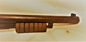 THIS IS A DAISY MODEL 25 PRODUCED AROUND 1936 IN PLYMOUTH MICHIGAN HAS A WOOD STOCK WITH PISTOL GRIP AND NON SLIP GROOVES ON BUTT ENGRAVED RECEIVER HAS BEEN BLUED BUT NOT MUCH LEFT ANYMORE . HAS BEEN RSEALED AND SHOOTS HARD NICE COLLECTIBLE GUN $ 20.00 SHIPPING IN LOWER 48