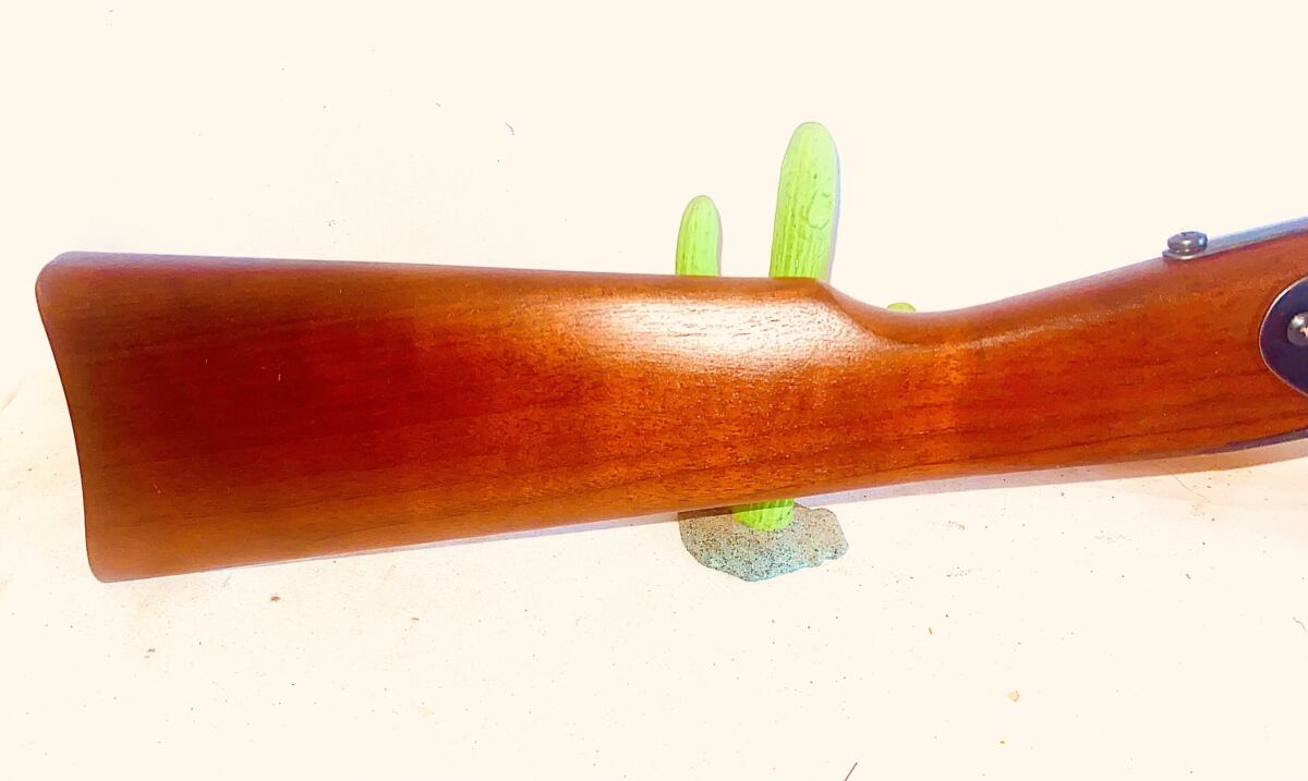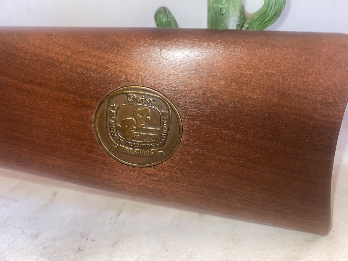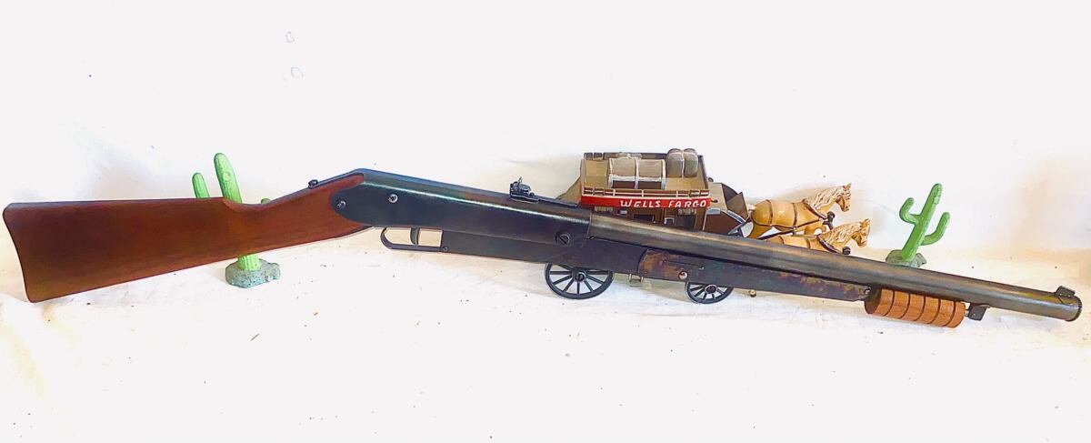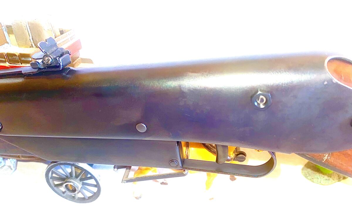 There isn’t much I can tell you about this model 25 other than it has been around my shop for several years and about 5 or 6 years ago I had a walnut centennial stock I got from Daisy so I fitted it to the gun The gun is blued but not from Daisy it has been chemical blued now . The only description on this gun is Daisy model 25 Rogers Arkansas USA . All screws go in from the right side and they are Phillips case hard cocking lever. Nice gun shoots hard . The shipping on this gun would be $25