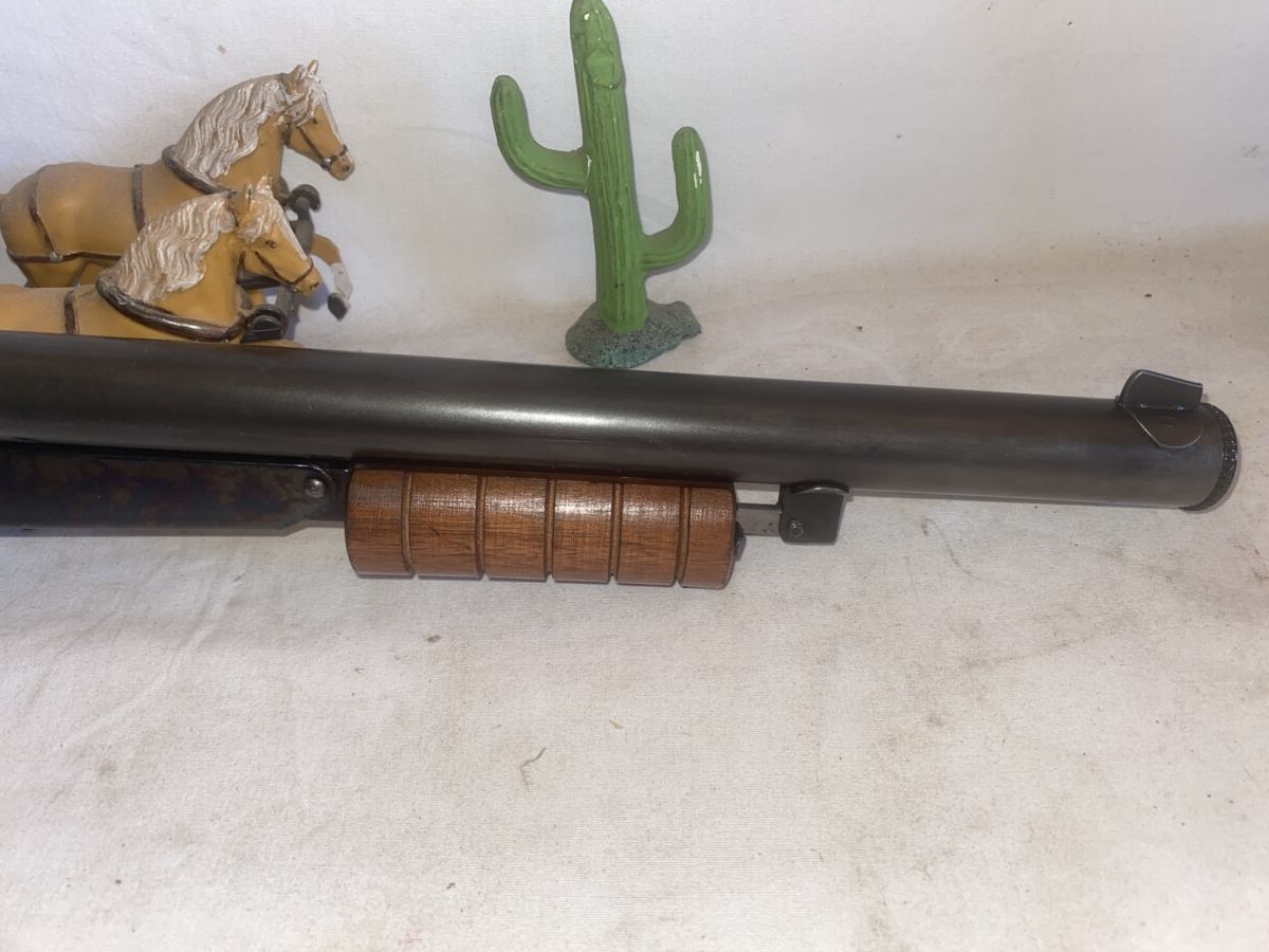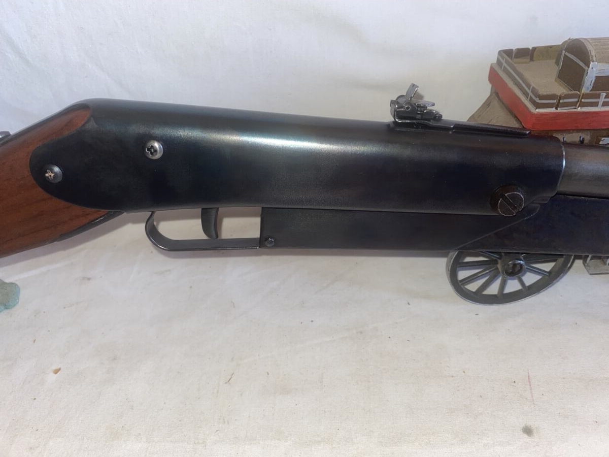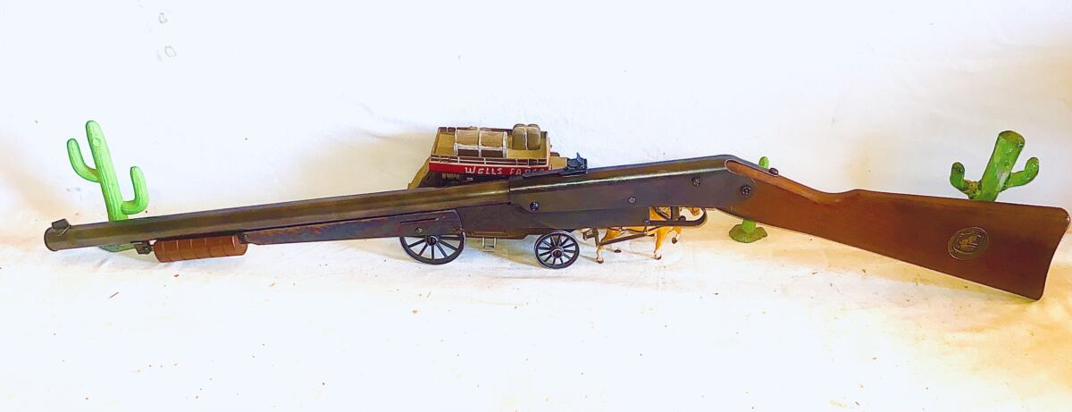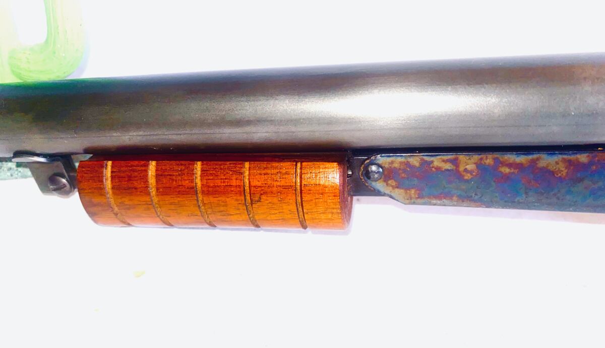There isn’t much I can tell you about this model 25 other than it has been around my shop for several years and about 5 or 6 years ago I had a walnut centennial stock I got from Daisy so I fitted it to the gun The gun is blued but not from Daisy it has been chemical blued now . The only description on this gun is Daisy model 25 Rogers Arkansas USA . All screws go in from the right side and they are Phillips case hard cocking lever. Nice gun shoots hard . The shipping on this gun would be $25