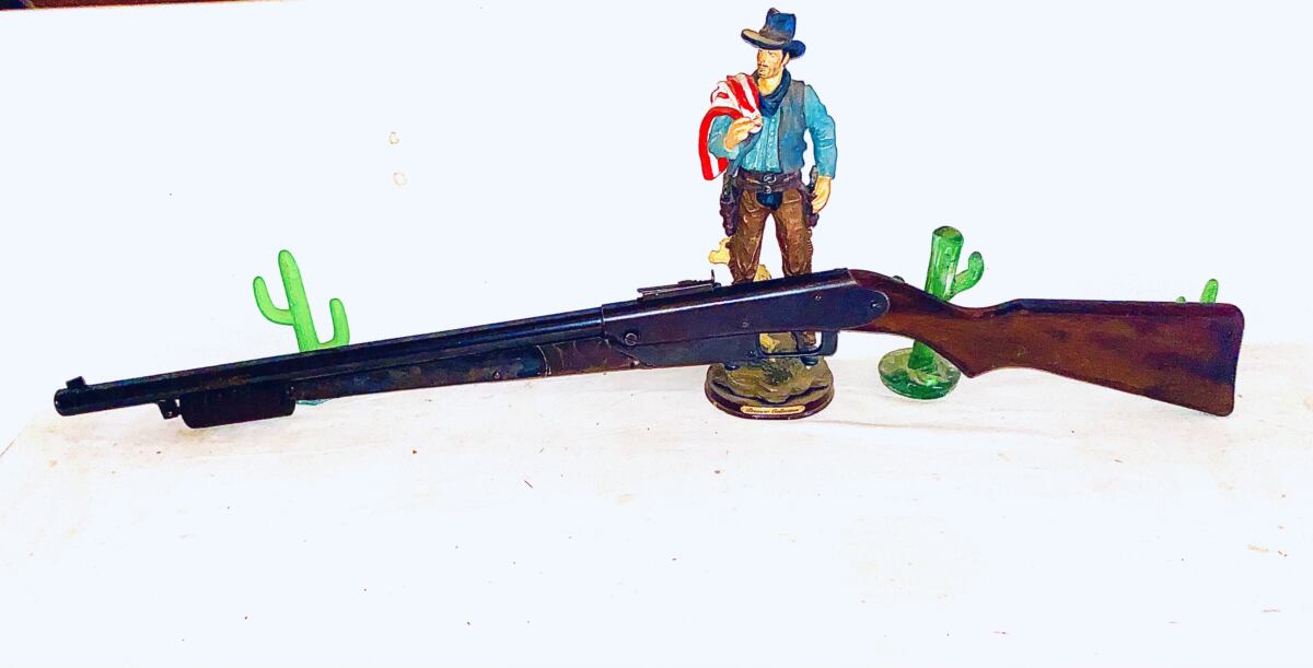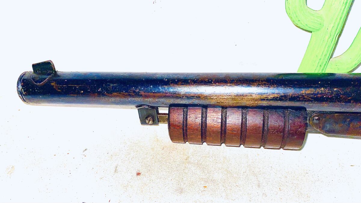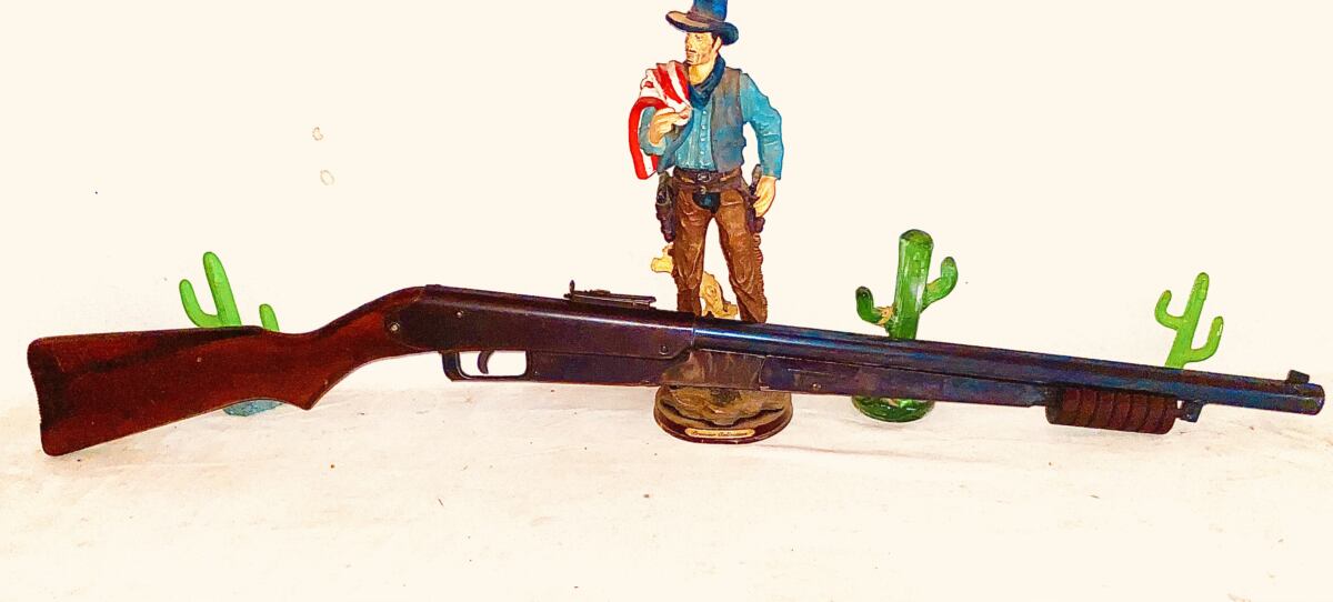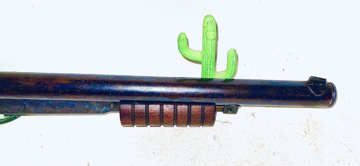 I recently got this gun in a collection that I purchased of 21 guns but there isn’t anyone available to talk about it . I believe it is a Frankenstein gun the gun first appeared to be from 1930 to 1942 the stock is from the 30’s as well as the barrel and cocking lever and the cocking lever is case hardened , long throw cocking 6 groove foregrip . But the receiver has the squared off trigger guard long trigger and large rear sight but it says on the description patent pending which tells me it is much older than the rest of the gun . It is a good gun and shoots hard. So in one way it is collectible and one way it’s not . Good conversation piece. The shipping on this gun would be $25