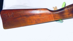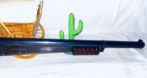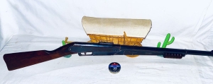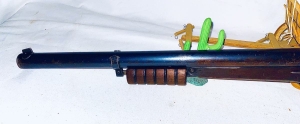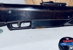 This Daisy model 25 with fixed front site , short stroke cocking lever, five groove variant 3 produced in Plymouth Michigan shortly after 1916 or 1917 produced sometime around WW1 actual date unknown . It has a fifty shot original shot tube lead bb’s . Gamo lead bb’s included. Approximately 85 percent of original bluing nice original walnut stock . The gun has been well taken care of shoots strong . Very collectible . There is the original owners initials carved in stock on right side near the butt but well done . The shipping on this gun would be $35