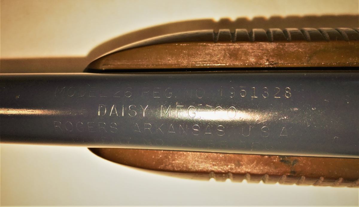 THIS DAISY MODEL 26 HAS THE MOLDED STOCK & FOREARM PAINTED FINISH , SLIDE ACTION PUMP , 45 SHOT REPEATER , 177 CALIBER BB . THERE HAS BEEN A SMALL AMOUNT OF TOUCH UP , NEW SEAL KIT , AFTER 55 YEARS . THIS GUN WAS PRODUCED FROM 1964 THRU 1966 . SHOOTS STRONG . NICE COLLECTIBLE AND RARE MOST OF THEM YOU FIND NOW DAYS ARE BROKEN .