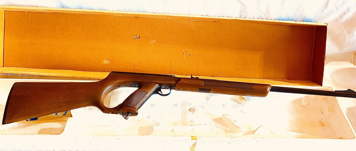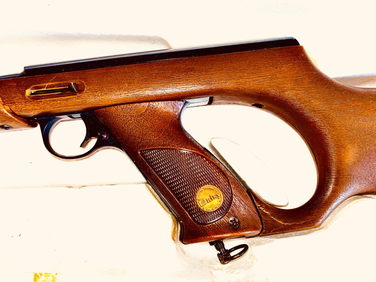 This gun is like new I don’t believe it has ever been loaded or shot I have had it for 3 years in storage I got it out the other day and it will not shoot It needs seals I think I don’t work on co 2 . But if you buy this and want to get it repaired you can call the Daisy museum in Rogers Arkansas and they will give you a number of someone who works on them . This is a semi-automatic futuristic styling plastic stock produced in Rogers Arkansas 1968 thru 1975 . Comes with box and original paper work . Collectible free shipping on this gun