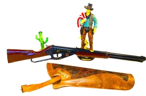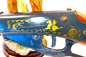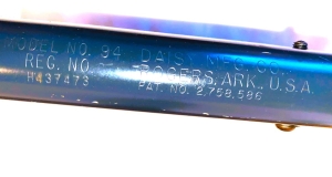 THIS IS A DAISY MODEL 94 WESTERN CARBINE PRODUCED IN ROGERS ARKANSAS FROM 1958 THRU 1961 . IT IS A LEVER ACTION , 850 SHOT REPEATER BB , MOLDED STOCK AND FOREARM , DUMMY HAMMER , GOOD PAINTED FINISH VERY LITTLE PLAYTIME . GOOD GRAPHICS ON BOTH RECEIVERS . COMES WITH THE ORIGINAL DAISY SHEATH IN GOOD CONDITION . SHOOTS STRONG . COLLECTIBLE . THE SHIPPING ON THIS WOULD BE $35 .