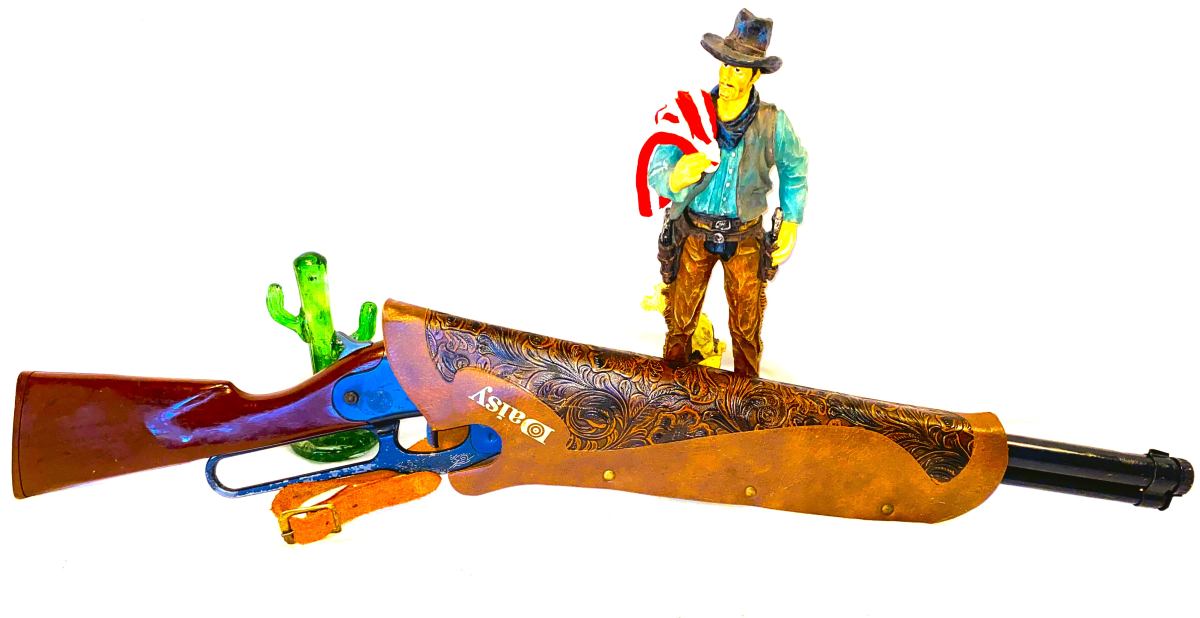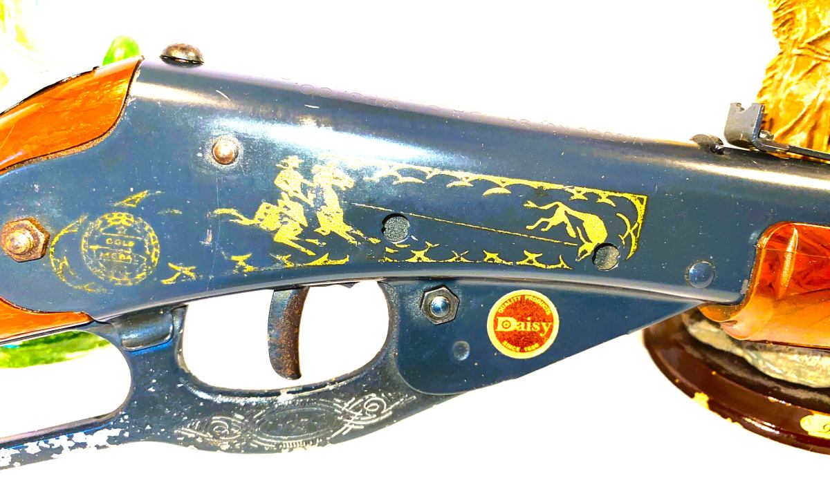 THIS IS A DAISY MODEL 94 WESTERN CARBINE PRODUCED IN ROGERS ARKANSAS FROM 1958 THRU 1961 . IT IS A LEVER ACTION , 850 SHOT REPEATER BB , MOLDED STOCK AND FOREARM , DUMMY HAMMER , GOOD PAINTED FINISH VERY LITTLE PLAYTIME . GOOD GRAPHICS ON BOTH RECEIVERS . COMES WITH THE ORIGINAL DAISY SHEATH IN GOOD CONDITION . SHOOTS STRONG . COLLECTIBLE . THE SHIPPING ON THIS WOULD BE $35 .