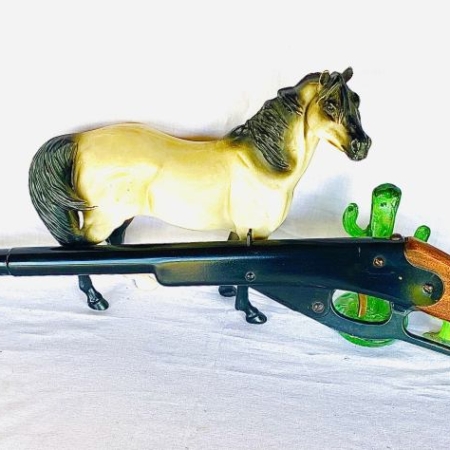 THIS IS A DAISY MODEL 97 RICOCHET BB GUN PRODUCED IN ROGERS ARKANSAS FROM 1960 AND ABOUT HALF OF 1961 . THIS IS A LEVER ACTION HOLDS 850 BB’S , INCLUDED RICOCHET NOISE MAKER SOUNDS GOOD , MOLDED STOCK AND STAMPED STEEL FOREGRIP STILL HAS NICE ORIGINAL FINISH ND HAS BEEN RESEALED AND SHOOTS STRONG AND ONLY A SLIGHT WARP IN THE STOCK . VERY NICE AND COLLECTIBLE FOR 63 YEARS OLD . VERY LITTLE PLAYTIME . THE SHIPPING ON THIS GUN WOULD BE $25