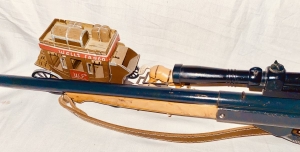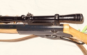 Daisy model 98 clean and has some show of playtime, good stock and for grip . Scope has good crosshair adjuster’s , brand new leather strap and shoots strong . Merry Christmas and Happy New Year! Thank you for looking! You must be 18 years of age and live in a state and city that is legal to purchase.