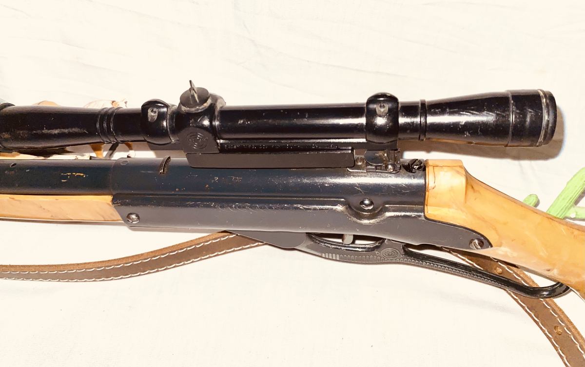 Daisy model 98 clean and has some show of playtime, good stock and for grip . Scope has good crosshair adjuster’s , brand new leather strap and shoots strong . Merry Christmas and Happy New Year! Thank you for looking! You must be 18 years of age and live in a state and city that is legal to purchase.