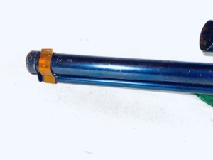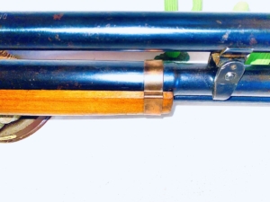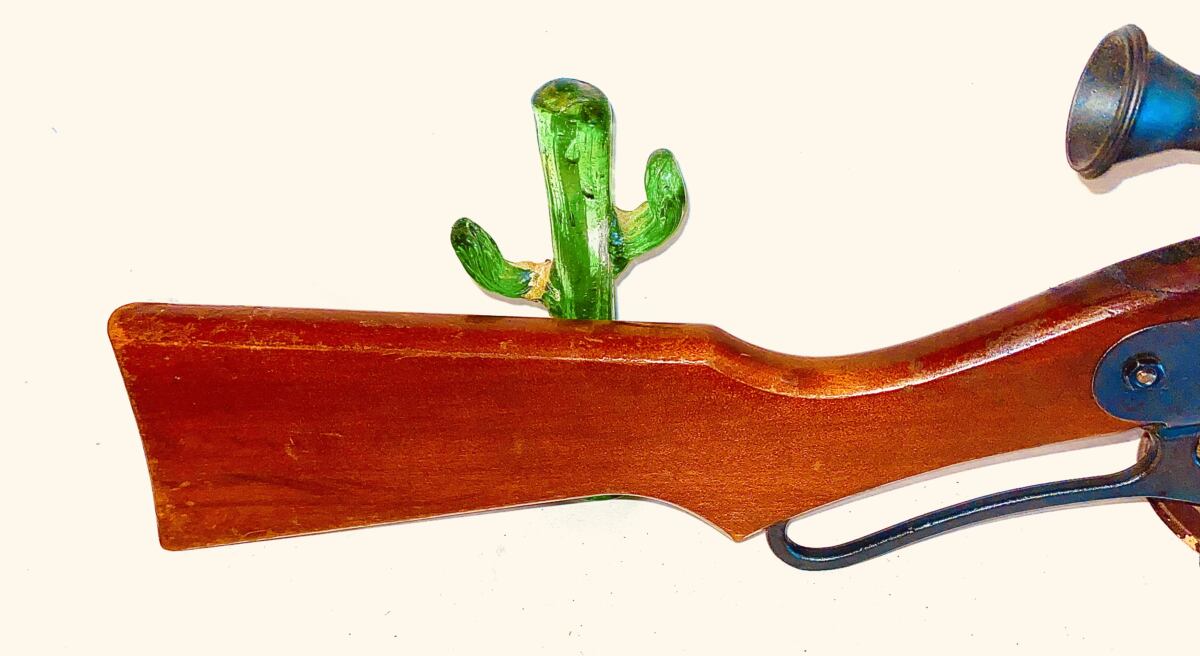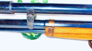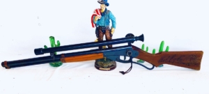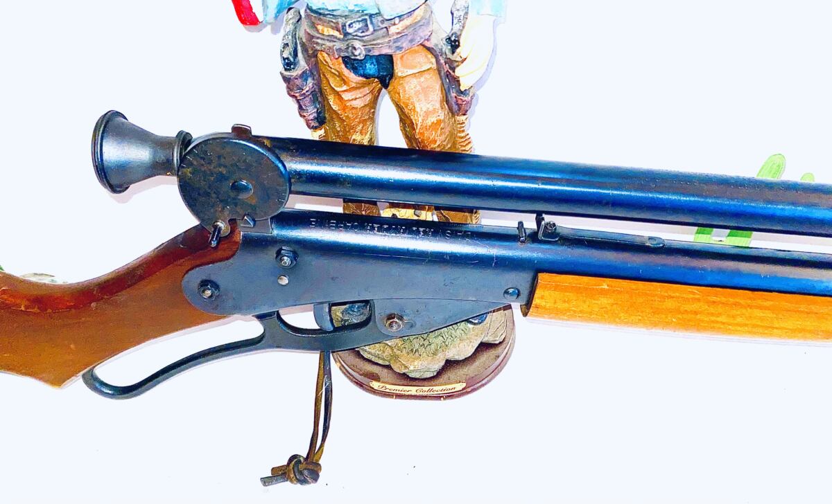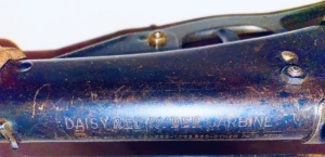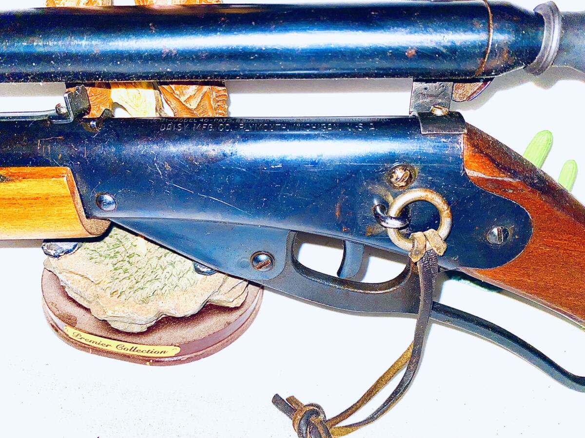 This Daisy Red Ryder was produced in Plymouth Michigan in 1940 the 1st year . It has been restored, resealed, reblued, and copper bands have been recoated . It has a 300 scope added . It has a cast iron cocking lever . After WW 11 ended in 1945 they went back to making the Red Ryder without copper coated bands but with the cast iron cocking levers and that ended in 1947 when they went with aluminum cocking levers and. Nice gun collectible