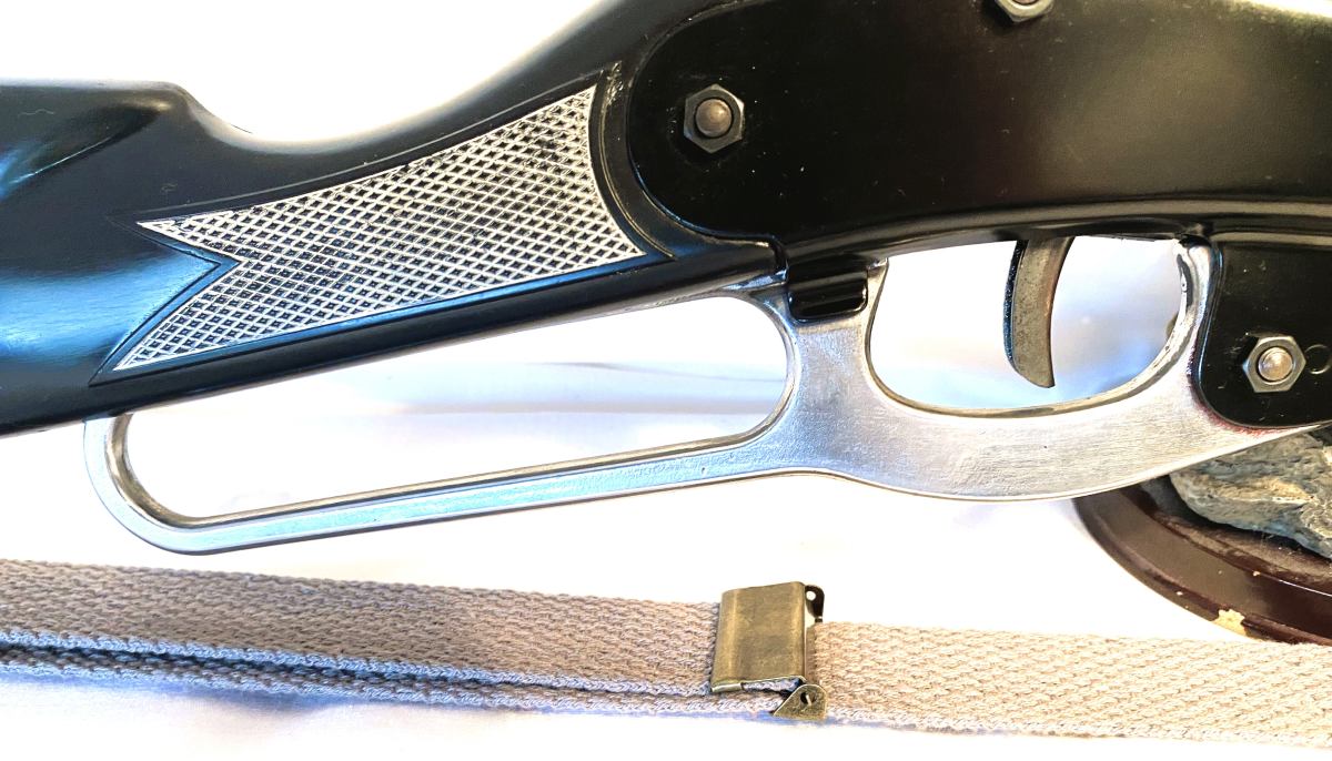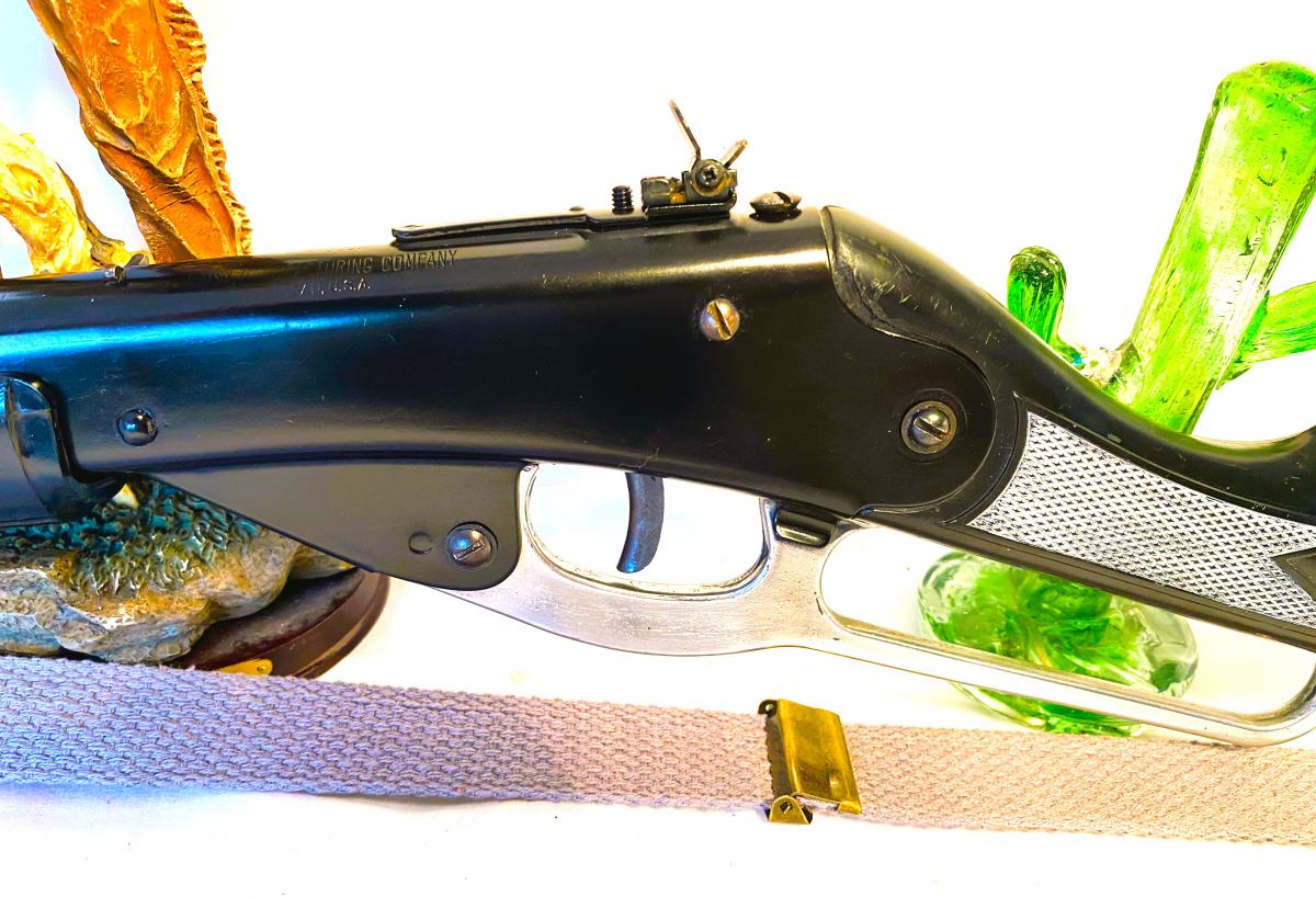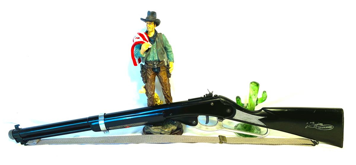 DAISY PRODUCED THIS J C HIGGINS WESTERN CARBINE FOR SEARS & ROEBUCK IN PLYMOUTH MICHIGAN FROM 1954 THRU 1957 . THIS GUN HAS BEEN REPAINTED AND RESEALED , NEW GREY SLING . SHOOTS STRONG . COLLECTIBLE