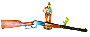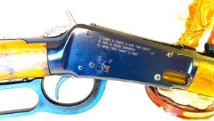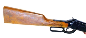 DAISY MODEL 1894 SPITTIN IMAGE OF THE WINCHESTER PRODUCED IN ROGERS ARKANSAS AROUND 1986 . IT IS ABOUT 98% NEW A FEW MINOR SCRATCHES AND SHOOTS STRONG 300FPS . HOLDS 40 BB’S WITH 10 SHOT MAGAZINE . SAFETY SWITCH ON RIGHT RECEIVER ,COMPOSITE STOCK & FOREGRIP . THE SHIPPING ON THIS GUN WOULD BE $30 .