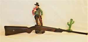 THIS HY-SCORE PELLET RIFLE IS THE YOUTH SIZE MADE IN WEST GERMANY APPROXIMATELY 70 YEARS AGO . STARTING TO SHOW ITS AGE BUT STILL A GOOD LITTLE RIFLE . SHOOTS VERY GOOD . GOOD FOR SMALL GAME VARMINTS OR JUST PLUNKING . THIS IS A BREAK BARREL SINGLE SHOT VERY STRONG POWER SPRING . SHIPPING ON THIS PELLET GUN WOULD BE $15 IN THE LOWER 48