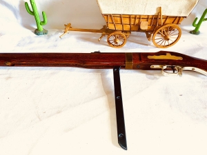 This Pioneer model 76BB gun was produced for our bicentennial in 1976 for about a year and a half or so . It does show some playtime after nearly 50 years . We did reseal it and it shoots strong . The gun has nice wood and under foregrip cocking lever . The hammer assembly is actually the safety it goes forward when it is cocked and pull the hammer back to shoot it the magazine shot tube holds appropriately 45 bb’s it has to be unscrewed and removed to reload it . It is spring fed . Gold colored plastic trim . The box is fair . The paper work is mostly reprinted the little tan folder is original. All the features are plainly printed on the box as seen . These guns are very collectible.The shipping on this gun would be $50
