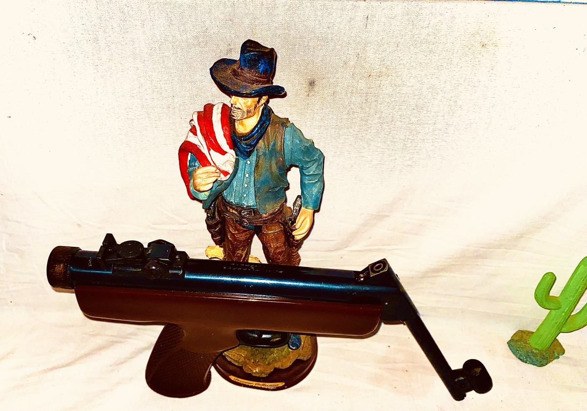 This is a well made pistol made by Winchester it weighs 2 3/4 lbs . Heavy bluing, well made composition grips and stock , rifled steel barrel, 7 “ break barrel cocking , spring piston power depending on the 177 caliber pellet used can reach 378 fps . Hooded front site, fully adjustable rear site . Great for small game, varmints , targets or even self defense. Produced for one year 1974 shows very little use . The shipping on this gun would be $25 you must be 18 years of age to purchase any bbgun and live in a city or state where it is legal to purchase them